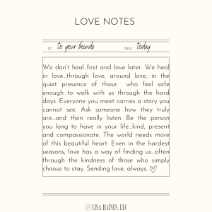 LOVE NOTES We don't heal first and love later. We heal in love... through love, ...