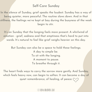 Self-Care Sunday In the silence of Sunday, grief speaks the loudest. Sunday has a way ...
