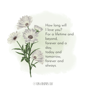 How long will I love you? For a lifetime and beyond, forever and a day, ...